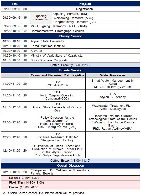 □ Hosted/Organized by : Korea Maritime Institute(KMI), Korea Foundation(KF), Atyrau State University(ASU)