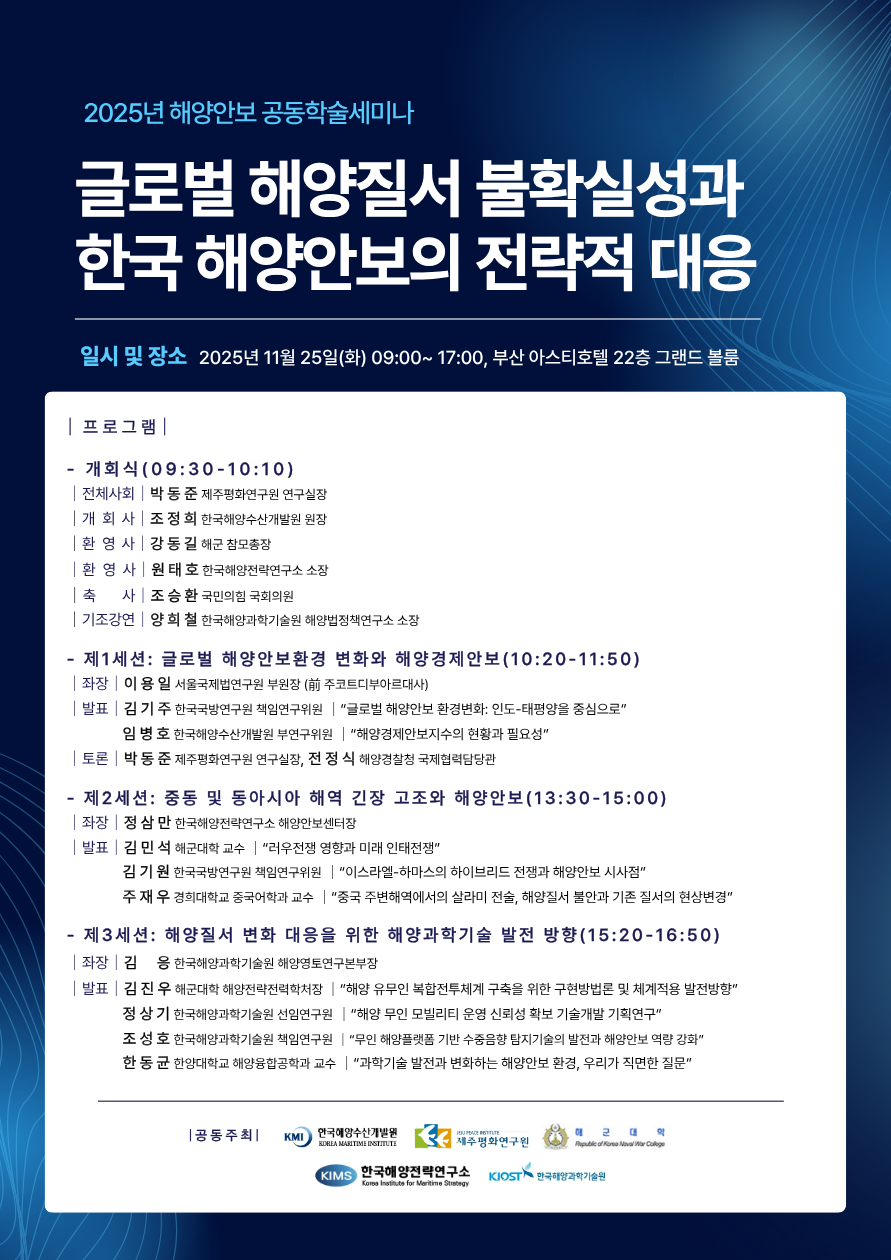 주제: 글로벌 해양질서 불확실성과 한국 해양안보의 전략적 대응